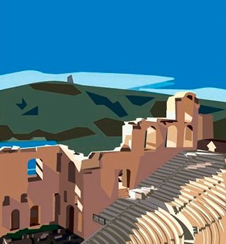 Kuvasta Art Deco tyyliseksi julisteeksi. Valitsin Kreikan Dionysuksen teatterin julisteen kuvaksi. Toteutus tapahtui blokkaamalla eri alueet omien väriensä ja varjostustensa mukaisesti sekä vähentämällä yksityiskohtia ja niin syntyi lopputulos, jota kutsutaan Art Deco taidetyyliksi.