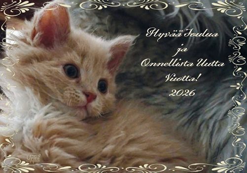 Olen tehnyt joulua varten kuvakortteja ja sen lisäksi olen tehnyt joulukortteja uusiin koteihin lähtevistä kissanpennuistamme. Kuvat kissoista on otettu satunnaisesti ja puhelimella, joten kuvat ovat hieman epätarkkoja, mutta se on osa ideaa.